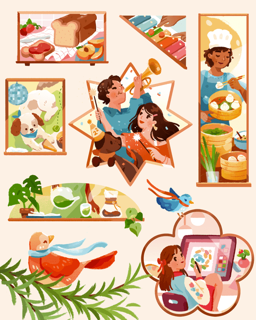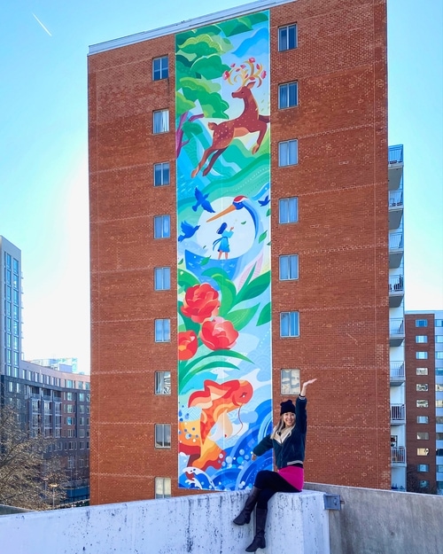 I want to create work with heart, purpose, and originality. Some of my favorite projects include hosting Doodle Therapy, my drawing show for Adobe Live, creating a series of dimensional woodcut mural installations (left), and spinning up my line of ceramics art collections inspired by my childhood memories growing up as an Asian-American kid in the Bay. And if you're in SF, you might've seen my murals around here for projects with National Geographic, the Asian Art Museum, Philz Coffee, Slack, SJ Walls, and more.